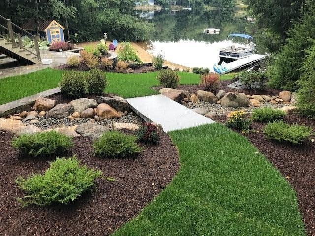 River rock stream beds add natural charm while offering practical solutions for drainage and erosion control. At Tasker Landscaping, LLC, we design and install custom stream beds that mimic the look and flow of nature—enhancing both form and function in your landscape. Whether used to manage runoff or create a tranquil visual feature, our stream beds are crafted with care and expertise. Explore our gallery to see how we use river rock to blend beauty with purpose.